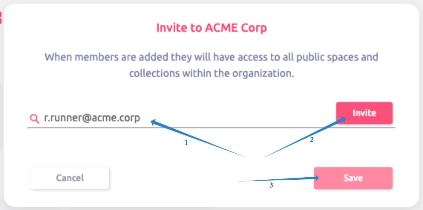 In order to collaborate with members of your team and give them access to your Spaces and Collections, you need to add them to your organization.