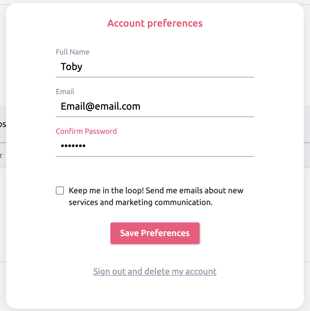 Made a spelling mistake? Have a new email? Lost access to your email? No worries, you can change the email associated with your Toby account at any time.