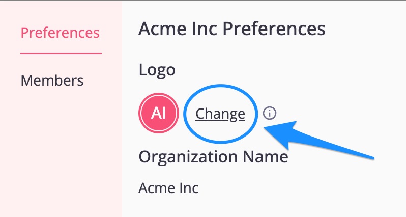 - Under preferences > Logo, click "change"